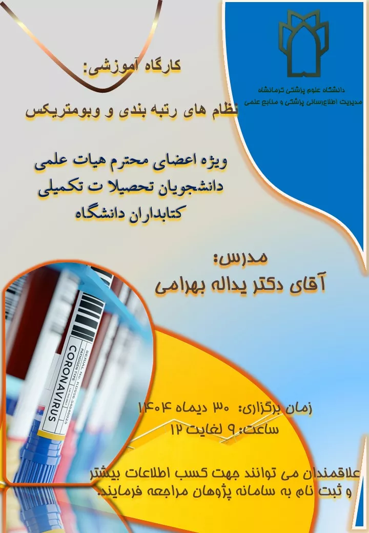 اخبار آزمون دوره غیرحضوری نحوه بارگذاری محتوا در وب سایت کتابخانه برگزار می شود. تعداد بازدید: ۳ کارگاه نظام های رتبه بندی و وبومتریکس برگزار شد. تعداد بازدید: ۶ کارگاه علم سنجی و تکمیل پروفایل ویژه اعضای هیأت علمی برگزار شد. تعداد بازدید: ۲ صفحه ۱ از ۵ دسترسیهای سریعفرمهاکارگاه - همایشاطلاعیهپیوندهای دانشگاهی سالن مطالعه بصورت ۱۶ ساعت فعال است. لیست دانشگاه - کتابخانه مرکزی - دیجیتال دانشگاه های علوم پزشکی کشور